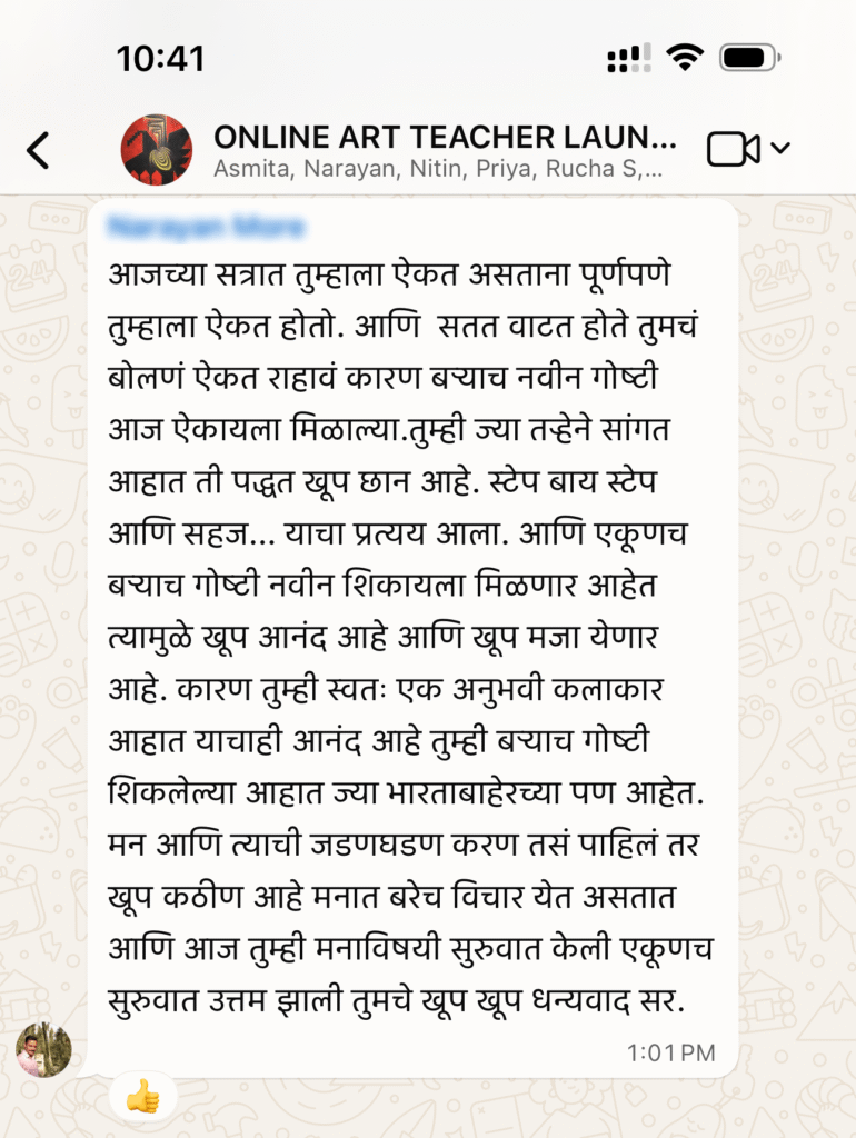 “तुमची कला हा केवळ महागडा छंद न राहता , एक व्यवसाय, एक प्रेरणा, आणि एक उत्पन्नाचं साधन बनू शकतं. आता वेळ आहे उभं राहायची …